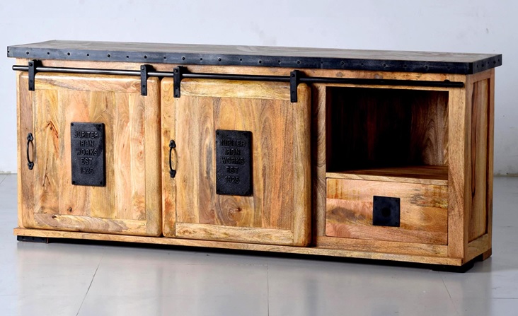 Table Basse Industrielle en Bois de Manguier avec Pieds en Fer
