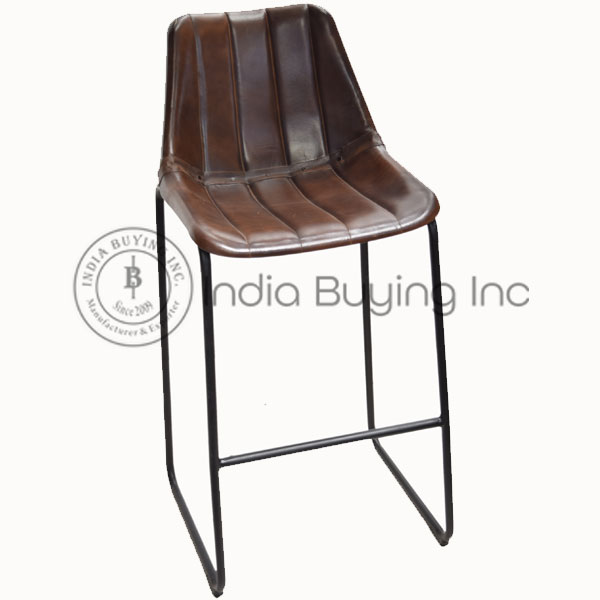 Tabouret de Bar Haut Industriel Vintage en Cuir