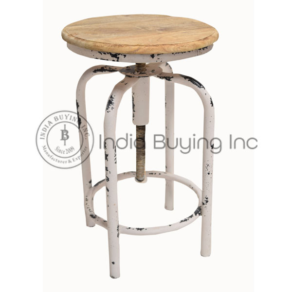 Tabouret de bar haut pivotant en fer vintage industriel avec assise et dossier en bois de manguier