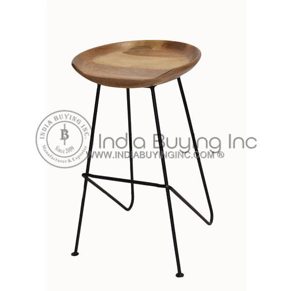 Tabouret de bar haut pivotant en fer vintage industriel avec assise et dossier en bois de manguier
