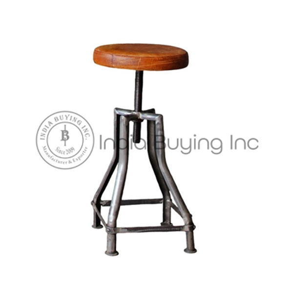Tabouret de Bar Haut Industriel Vintage en Cuir