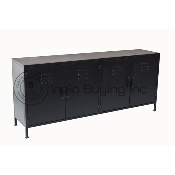 industrial furniture mango rough wood top iron structure mesh deshgn 3 drawer sideboard