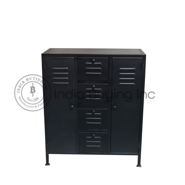 wooden iron industrial design sliding glass door 3 drawer storage cum display cabinet