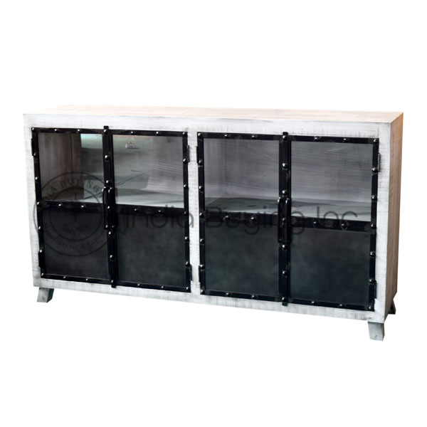 industrial furniture mango rough wood top iron structure mesh deshgn 3 drawer sideboard