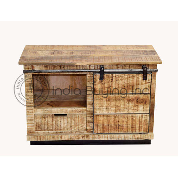 industrial furniture mango rough wood top iron structure mesh deshgn 3 drawer sideboard