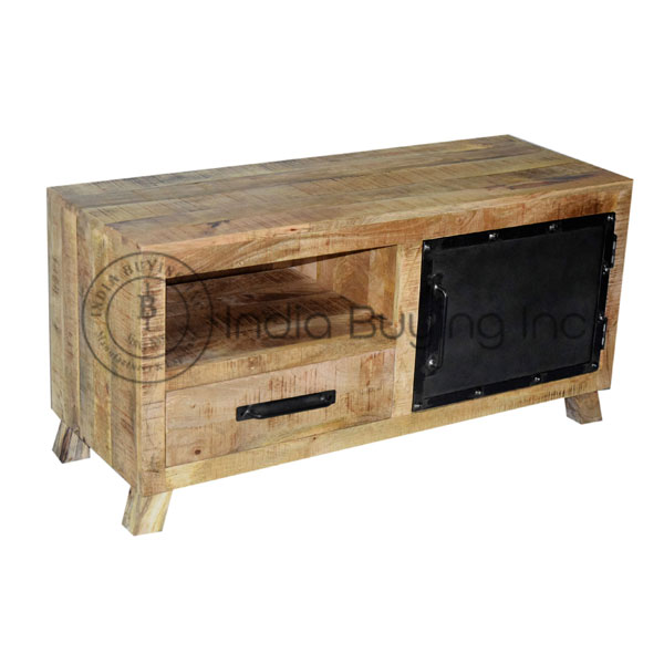 wooden iron industrial design sliding glass door 3 drawer storage cum display cabinet