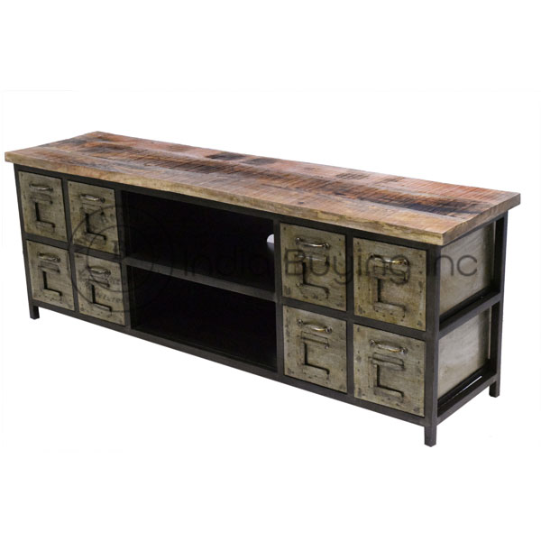 Iron Drawer Mango Wood Vintage Industrial Style Tv Unit