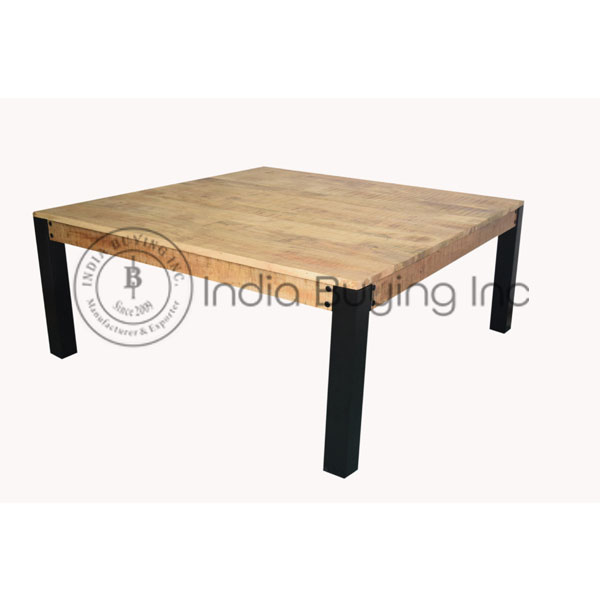vintage industrial style iron frame wooden self mango rough wood top square center table .