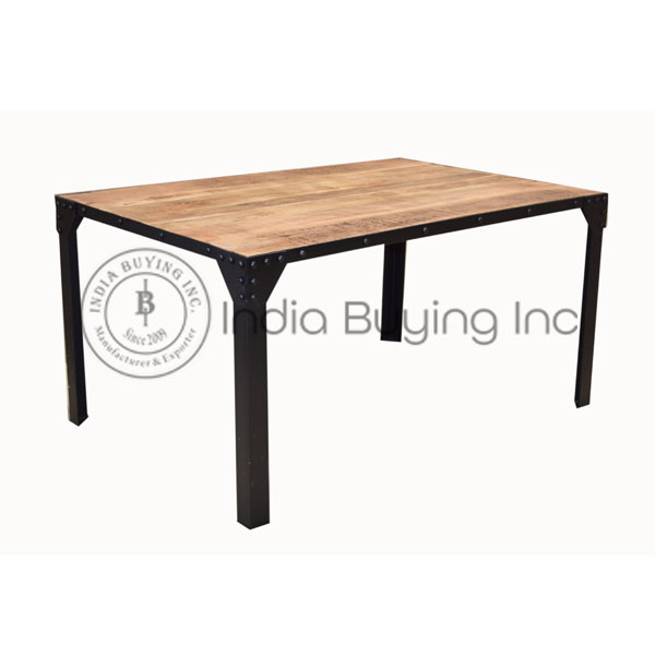 Table de salle à manger pliante avec cadre en fer et pieds en bois de manguier de style industriel