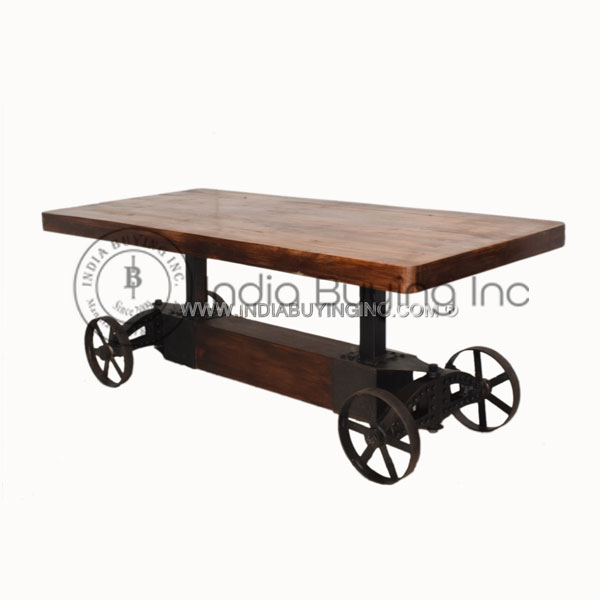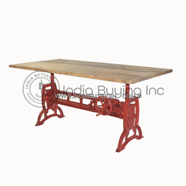 Table de salle à manger en bois de manguier avec mécanisme à manivelle en fonte