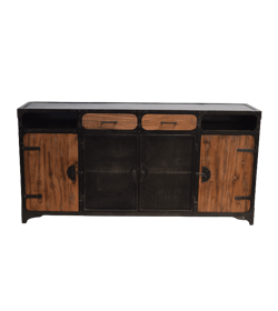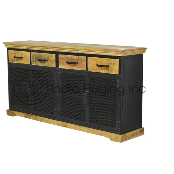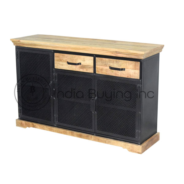 Solid Mango wood iron frame Modern Industrial style double part storage cum display cabinet.