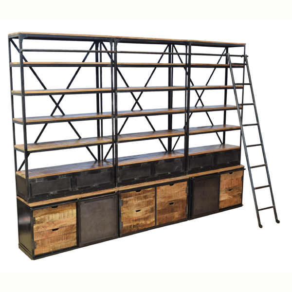 Large open double part storage bookshelf with ladder