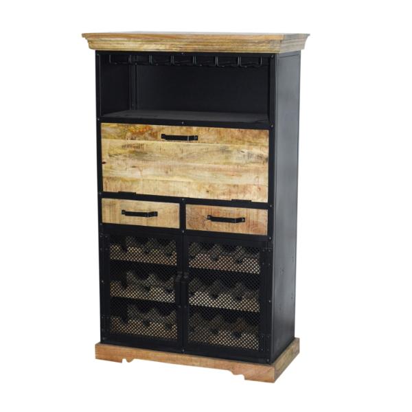 Armature en fer industrielle moderne Tiroir en bois Home Bar Wine Rack Cabinet