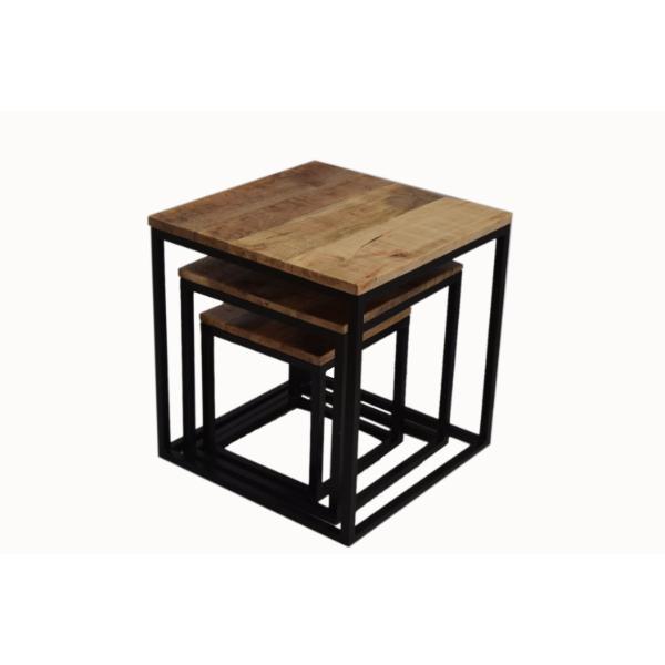 industrial restro style iron folding leg mango rough woode top natural finish side table