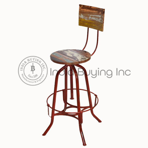 Geregenereerde houten stoel en rugleuning, industriële metalen hoge draaikruk met verouderde antieke afwerking