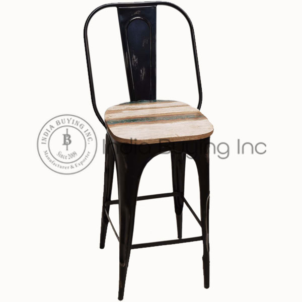 Vintage Industrial Design Bar Chair Reclaimed Old Wood Seat.