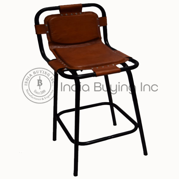 Industrieel ijzeren onderstel van echt leer met knopenstijl