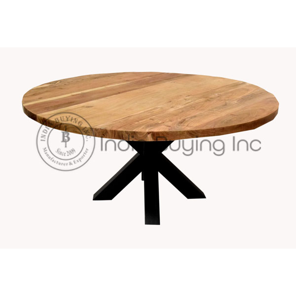 vintage industrial style iron frame mesh self mango rough wood top round center table .