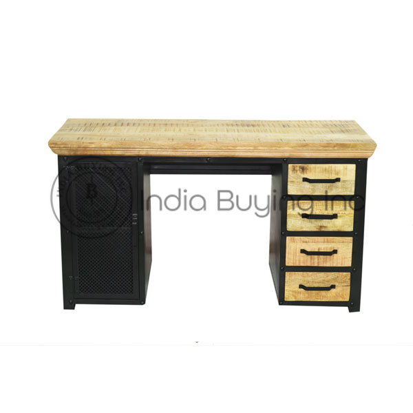 INDUSTRIAL DESIGN WODOEN IRON WRITING TABLE WITH DRAWER