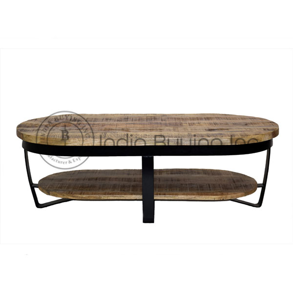 Oval design coffee table from the India Buying Inc. is made of mango wood and metal.The legs are made of metal, which makes them very sturdy and gives them a sturdy look