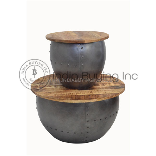 This round shape coffee table set is made from iron sheet base and features a smooth wide rough mango wood top that can be used for serving and various decorative purposes. This short heighted coffee table has a narrow flat base that provides it a good stability on the ground.
