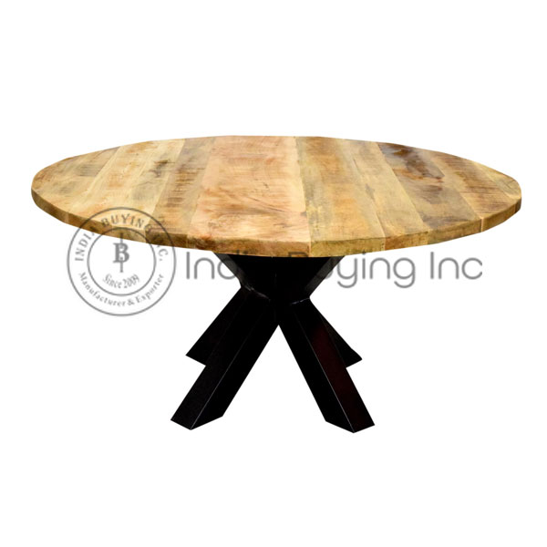 iron square pipe leg mango wood round coffee table with rough mango wood finish