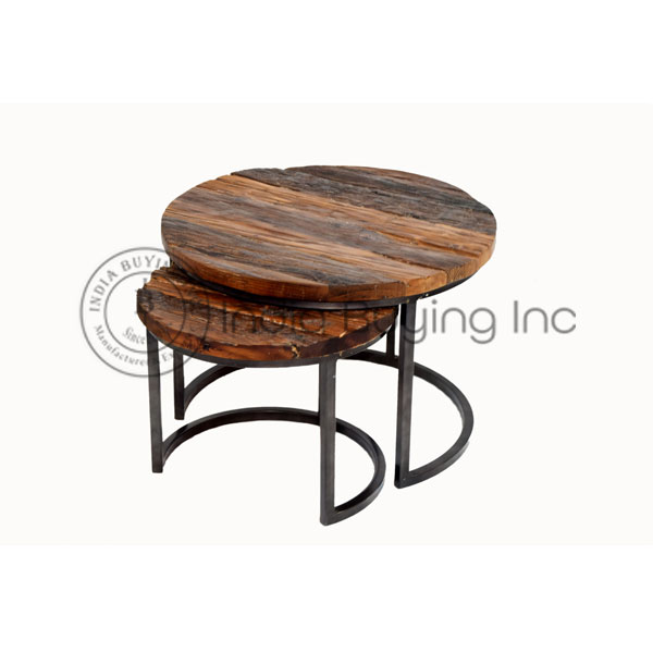 This round shape coffee table set is made from iron sheet base and features a smooth wide rough mango wood top that can be used for serving and various decorative purposes. This short heighted coffee table has a narrow flat base that provides it a good stability on the ground.