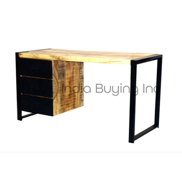 industrial design iron base mango rough wood tv table cum side table with 2 drawer storage