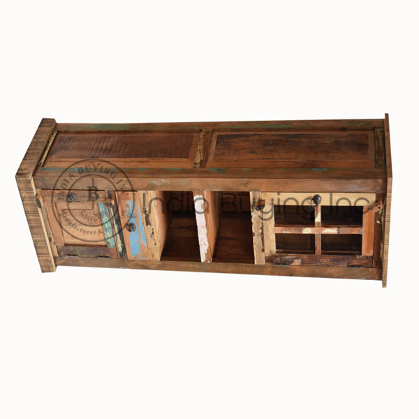 Old Reclaimed Recyled Color Wood Multi Drawer Tv Cabinet