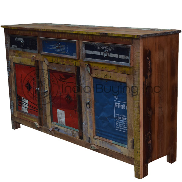 Reclaimed Wood Sideboard With Iron Old Indian Ethnic Box Metal