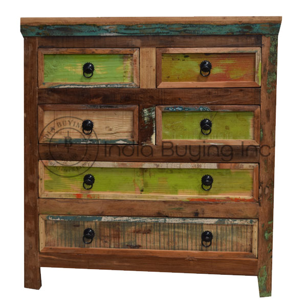Recycled Color Wood Multi Drawer Storage Home Decorative Cabinet