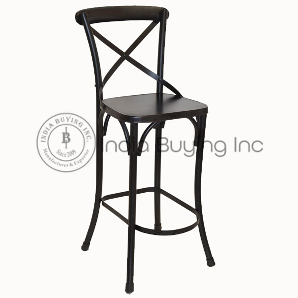 Industrial Vintage Antique Finish Bar Chair With Cross Back