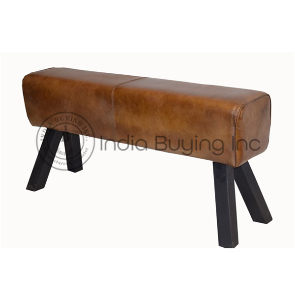 Industrial Vintage Genuine Leather Seat and Back Indoor Restaurant Liesure Iron Frame Bench