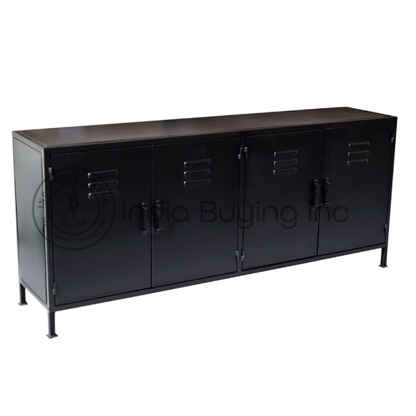 industrial furniture mango rough wood top iron structure mesh deshgn 3 drawer sideboard