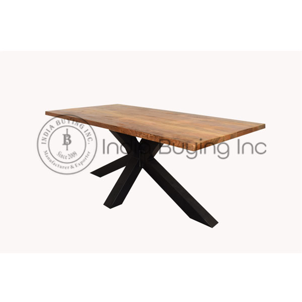 This Iron folding leg dining table from India Buying Inc is made of mango wood and metal base. Due to the unique thread of the wood, each piece of mango wood has a special and individual appearance. The wood is known for its fine grain with beautiful warm flame drawings in various shades.