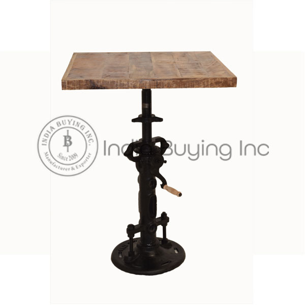 Vintage Industrial Cast Iron Crank Mechanism Jack Base Mango Wooden Sqaure Top Dining Table
