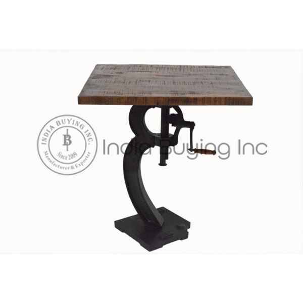 Vintage Industrial Cast Iron Crank Mechanism Jack Base Mango Wooden Sqaure Top Dining Table