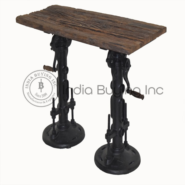Wooden iron vintage industrial style iron base round coffee cum center table with iron mess design storage shelf .