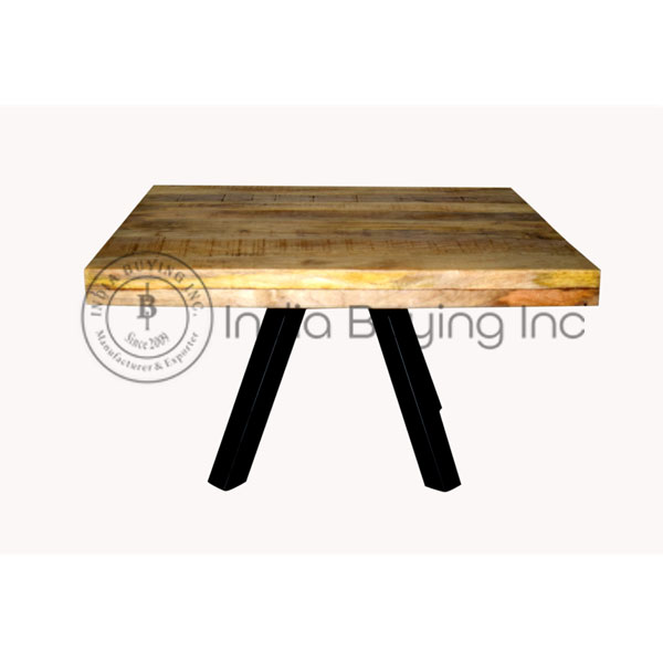 Industrial design wrought iron base square center coffee table made of mango wood and metal legs.