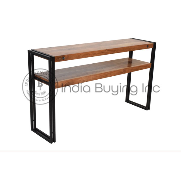 Industrial furnuiture wooden top iron pipe leg fside console table
