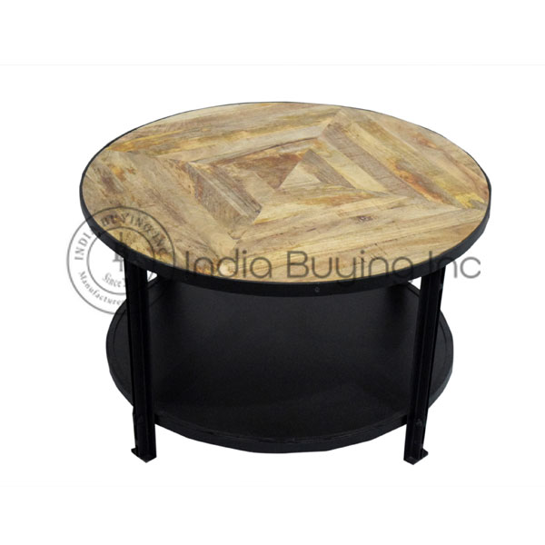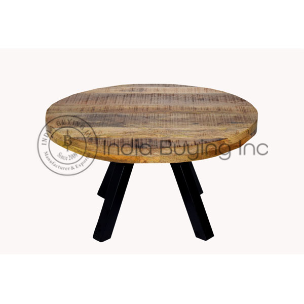 iron square pipe leg mango wood round coffee table with rough mango wood finish