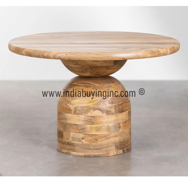 The table’s standout feature is its stacked spherical base. This design element gives it a distinctive, modern look that sets it apart from traditional coffee tables. The use of natural wood adds a warm and earthy touch, making it suitable for various interior styles, especially contemporary or minimalist.